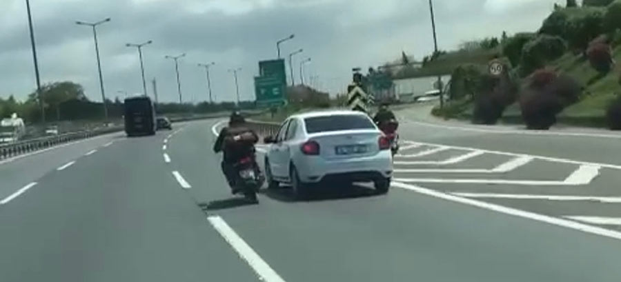 Olay öğle saatlerinde Ataşehir TEM Otoyolu Ankara istikametinde meydana geldi. Motosiklet sürücüsü otomobille bir süre aynı şeritte gitti. Aracın sürücüsü motosiklete çarpmamak için manevra yaptı.Motosiklet sürücüsü bir süre sonra otomobilin önüne geçerek fren yaptı. Otomobilin sürücüsü ise motosikletliye çarpmamak için frene bastı. Bir süre emniyet şeridinde ilerleyen otomobil sürücüsü ise, motosikletlinin önüne geçerek frene bastı. Uzun süre birbirlerine yol vermeyen sürücüler TEM Otoyolu’ndaki diğer araç ve sürücülerin de hayatlarını tehlikeye attı. Motosiklet sürücüsü ile otomobil sürücüsünün trafikteki görüntüleri başka bir sürücü tarafından cep telefonu kamerasıyla kaydedildi.