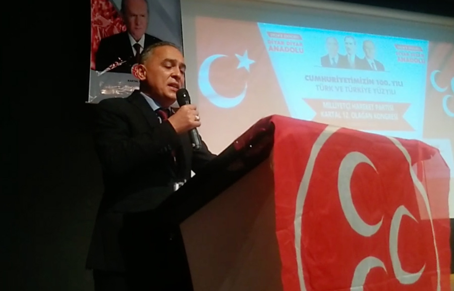 12. Olağan Genel Kurul Toplantısında konuşan ilçe başkanı Zübeyir Kurt; “Türk Milletine gönül vermiş, korkusuz yüreklerin buluştuğu, Milliyetçi Hareket Partisi Kartal İlçe Teşkilatımızın 12. Olağan kongresine hoş geldiniz. Öncelikle bugün değeri çok daha iyi anlaşılan mücadelenin kahramanı, devletimizin kurucusu olan Mustafa kemal Atatürk ve silah arkadaşlarının aziz hatırasını saygı ve şükranla anıyorum. Bu vesileyle Türklüğü yaşatmak uğruna hayatlarını feda eden kahraman ecdatlarımızı, bugün bölücülükle mücadele ederken şehit düşen kahraman güvenlik güçlerimizi ve gazilerimizi rahmet ve minnet duygularımla yad ediyorum. Ömrünü Türklük ve Türküye ülküsüne adamış merhum Başbuğumuz Alparslan Türkeş beye ve ebediyete intikal etmiş bütün şehitlerimize cenabı Allah’tan rahmet diliyorum. Ülkücü harekete yakışır bir olgunluk içinde geçeceğine emin olduğum kongremizin, Kartal ve ülkücü hareket için hayırlı olmasını temenni ediyorum. Türk milli benliğini koruma ve yüceltme azmi ve iradesi Ülkücü Haraketlin vazgeçilmez ilkeleridir. Kartallı bozkurtlar Türkiye’nin milli varlığına ve birliğine kast etmek isteyenleri mutlaka hüsrana uğratacaktır. Milliyetçi Hareket ağır tahribatlara rağmen Türk Milletinin ayakta kalmış sarsılmaz kalesidir. Türkiye Cumhuriyeti Devleti tektir. Ülkesi ve milleti birdir. Milli birlik ve bölünmez bütünlüğümüzün dayandığı temeller Tek Devlet, Tek Millet, Tek Bayrak ve Tek Dil ülküsüdür. Milliyetçi Hareket toplumsal siyasetin merkezidir” dedi.